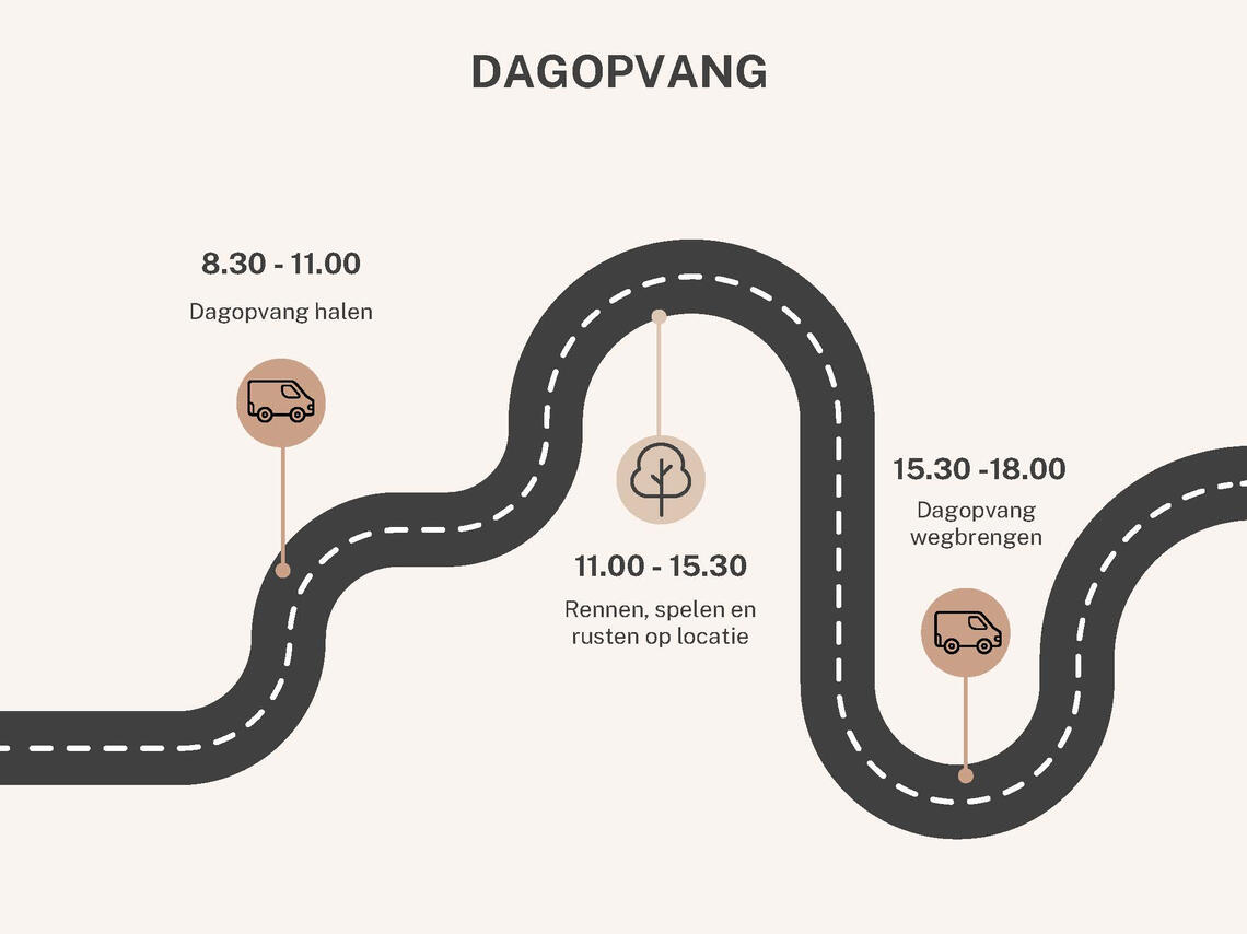 Wij halen uw hond rond 08.30 uur op en brengen hem of haar in de namiddag weer thuis.Voor de dagopvang in het weekend staan er standaard vijf plekken open.Het tarief is €32,50. Voor een tweede hond uit hetzelfde gezin geven wij 10% korting.